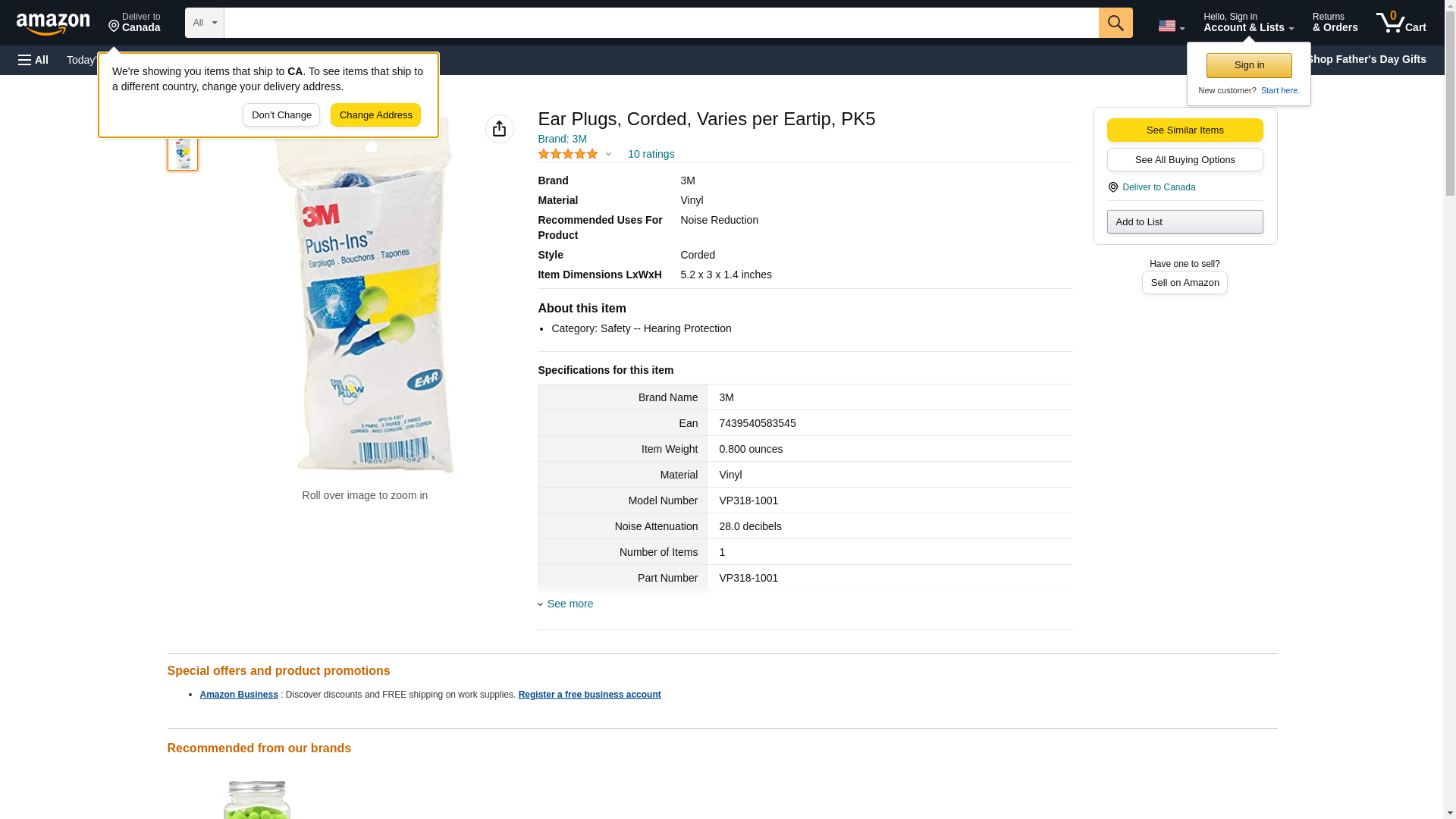 Order VP318-1001 by 3M E-A-R Push-Ins Earplugs, Corded - US Mega Store