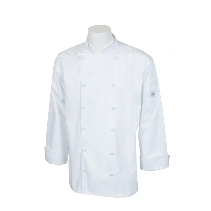 - DURABLE CONSTRUCTION: This chef jacket is created using a luxurious poly cotton twill fabric and reinforced stitching for comfort, easy cleaning, and wrinkle resistance