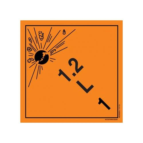 Order TCP129VP50 by Accuform 10-3/4" x 10-3/4" TDG Placard "Class 1.2 L1" - US Mega Store