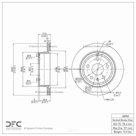 Dynamic Friction Company Rear Disc Brake Rotor 600-48058 (1) For 2010-2017 Chevrolet Equinox, 2010-2017 GMC Terrain