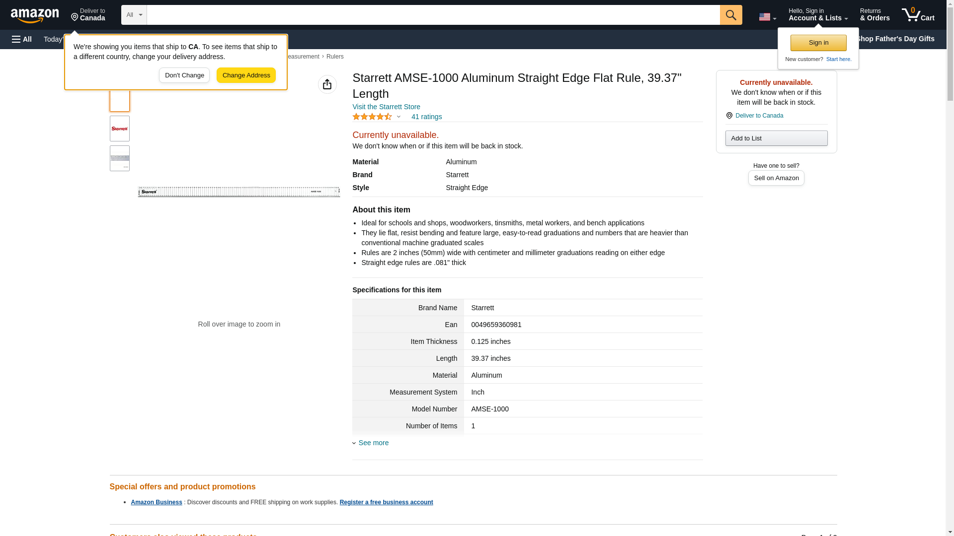 Starrett AMSE-1000 Aluminum Straight Edge Flat Rule, 39.37" Length