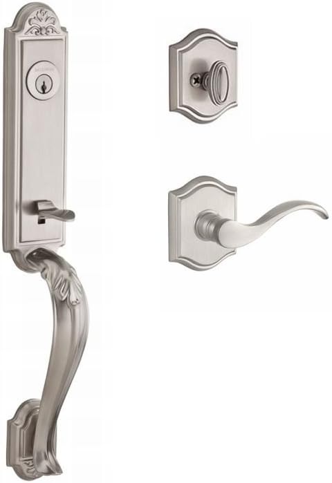 Baldwin SCELIXCURRTAR150 Reserve Single Cylinder Handleset Elizabeth x Curve with Traditional Arch Rose in Satin Nickel Finish Right Hand