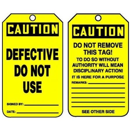 OSHA Caution Safety Tag: Defective - Do Not Use Standard Back A RP-Plastic 5/Pack - MDT603PTM - Jendco Safety Supply