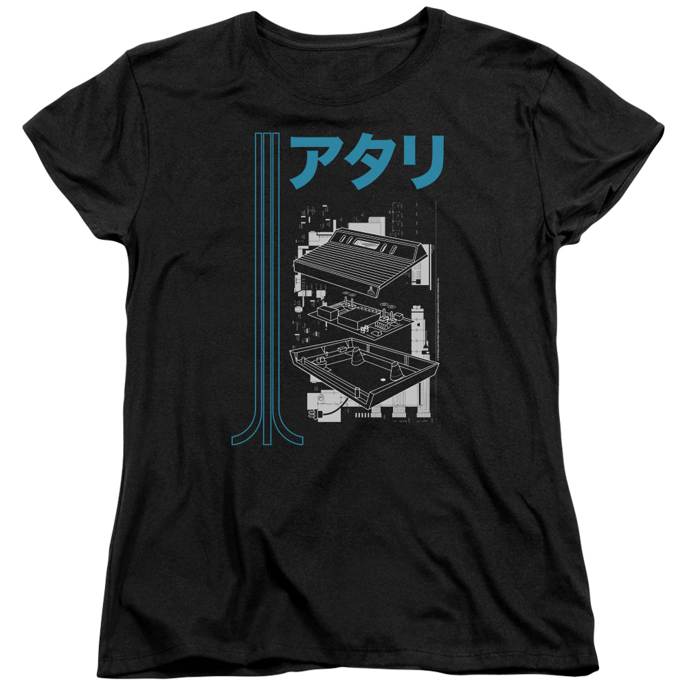 Trevco ATRI196-WT-4 Atari & Schematic Womens Cotton Short Sleeve T-Shirt, Black - Extra Large