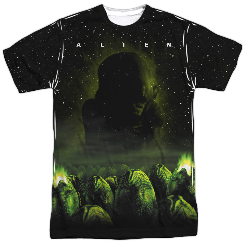Trevco TCF128-ATPP-3 Alien & Ominous Adult Regular Fit Polyster Crew Neck Short Sleeve T-Shirt, White - Large