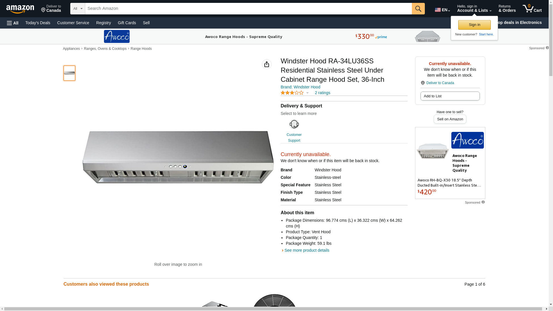 | goedekers.com | RA34LU36SS | 1 | 1 | 1 @ $788.00 |