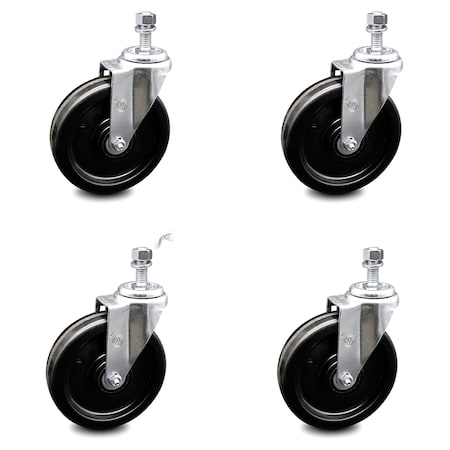 6 Inch Phenolic Wheel Swivel 10mm Threaded Stem Caster Set