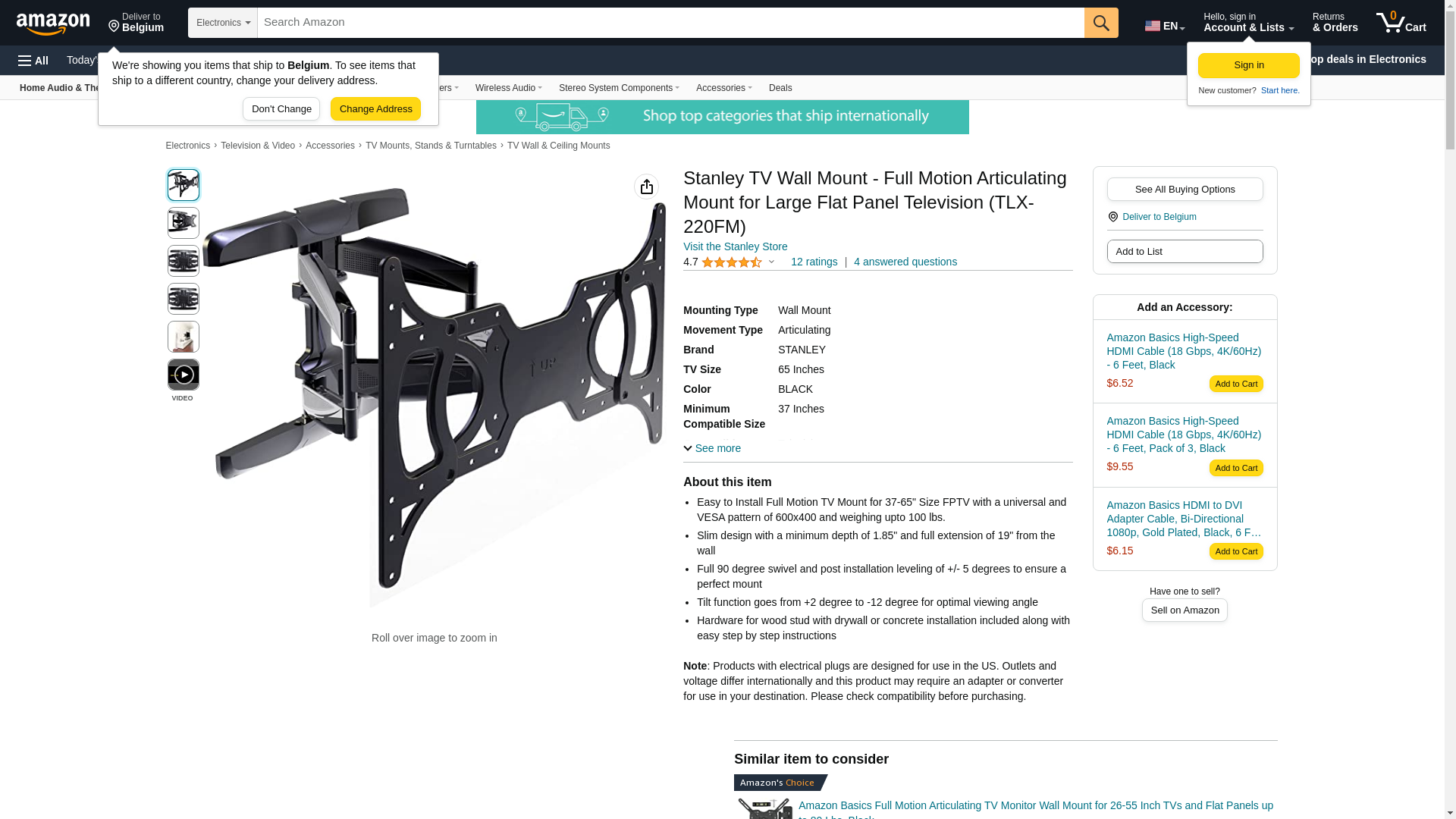 Stanley TLX-220FM 37"-65" Full-Motion Flat Panel Mount
