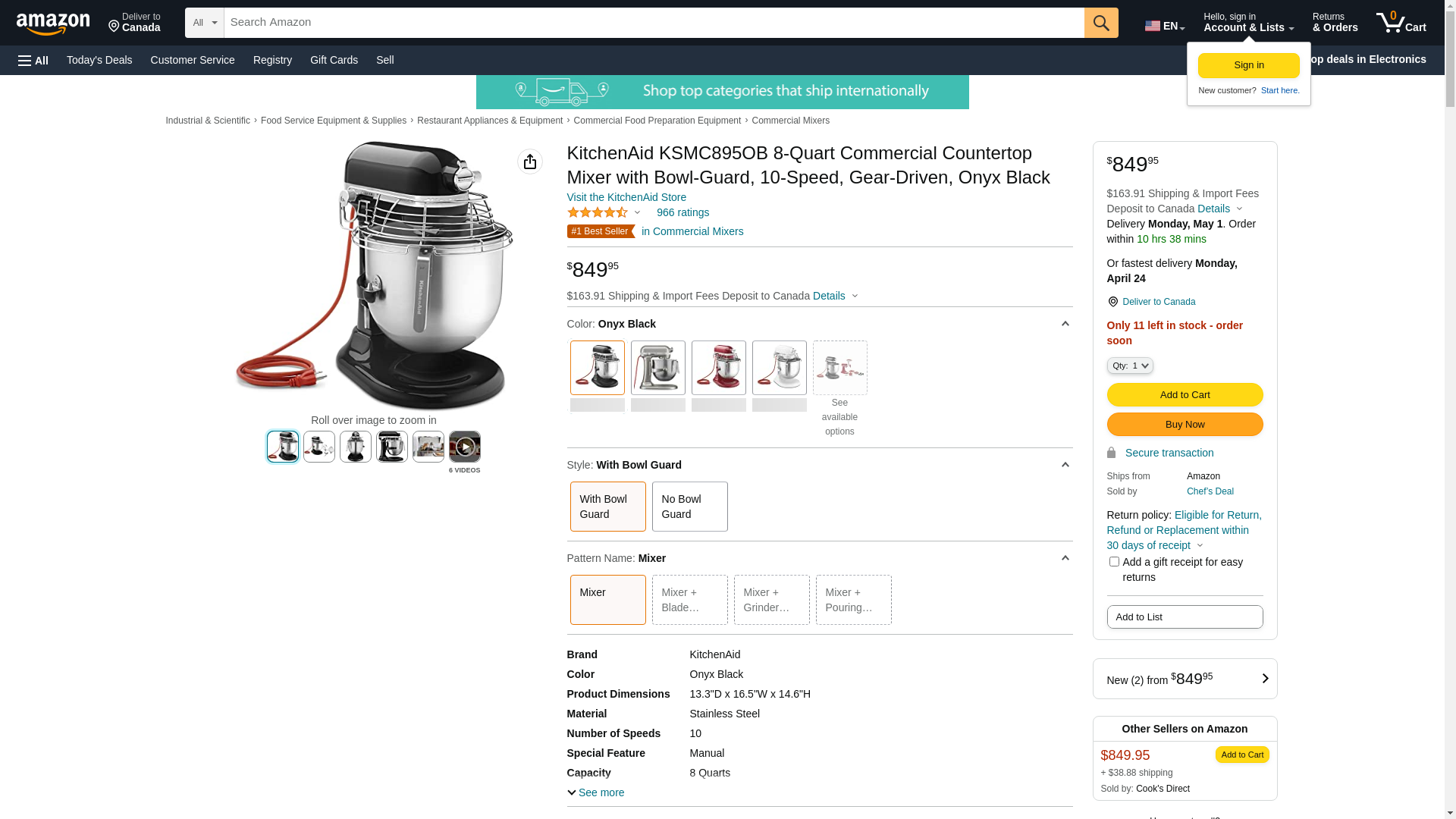 | Feature | "The KitchenAid (KSMC895OB) 8-Quart Stand Mixer with Bowl Guard is a baker's essential equipped to handle more than 8 pounds of dough for the perfect batch of cookies, bread, or crust in a single bowl." |