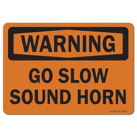 OSHA Warning Sign, Go Slow Sound Horn, 10in X 7in Aluminum