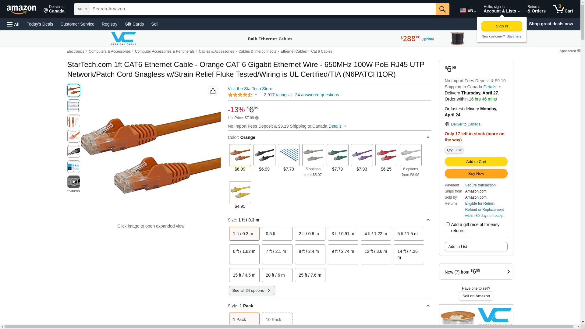 | STCN6PATCH1OR | 1 | -2 | 1 | 1 @ $3.42 | |