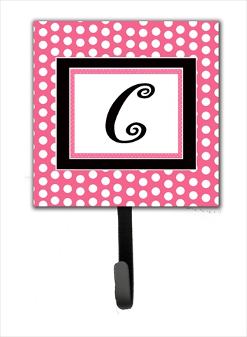 Carolines Treasures CJ1001-CSH4 Letter C Initial Monogram - Pink Black Polka Dots Leash Holder Or Key Hook