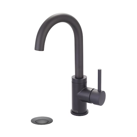 Featuring clean lines and superb craftsmanship, the Motegi Collection is a minimalist”s dream designed with sleek, luxurious lines and quality craftsmanship to inspire architectural masterpieces. The simple flowing design makes cleaning these faucets effortless, and the dramatic geometry of the Motegi Collection brings sophistication and sculptural art to any room. <br><br><b>Features:</b> <ul> <li>Metal Lever Handle</li> <li>Gooseneck Spout Swivel 90 Degrees</li> <li>5-1/2" Reach, 8-1/2" from Deck to Aerator</li> <li>Ceramic Disc Cartridge with Temperature Limit Cap</li> <li>1-Hole Installation</li> <li>Brass Pop-Up Drain Assembly</li> <li>Easy-Install 18" Flex Supply Lines With 3/8" Connections</li> <li>With 1.2 GPM Flow Rate</li> </ul>
