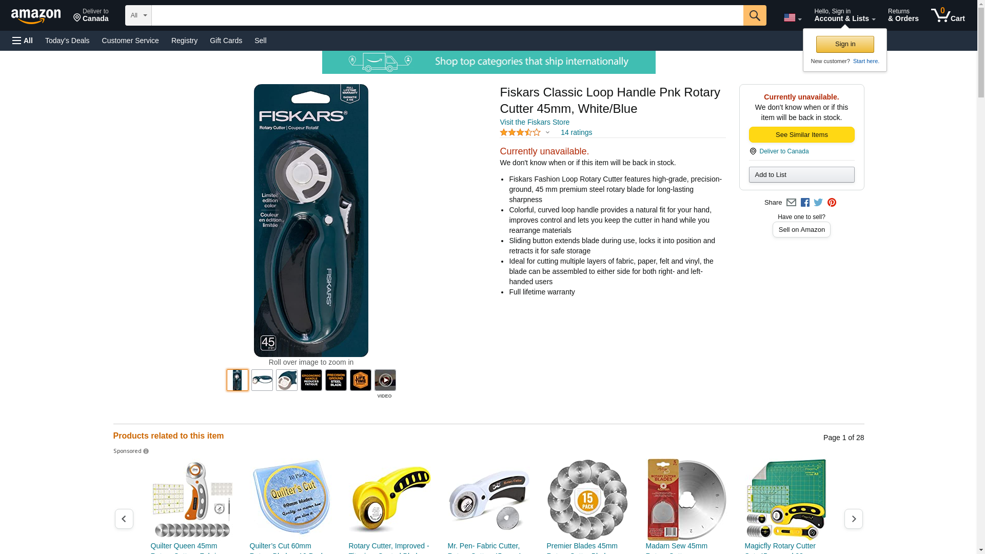 Fiskars Classic Loop Handle Pnk Rotary Cutter 45mm, White/Blue