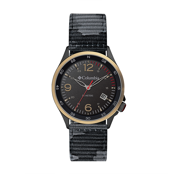 Columbia CSC02-002 10 in. Canyon Ridge 3-Hand Date Black Camo Nylon Watch for Men, Black