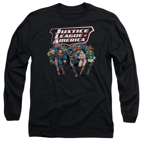 Trevco Jla-Charging Justice Long Sleeve Adult 18-1 Tee, Black - 2X