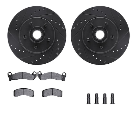 Dynamic Friction Company Front Brake Rotors-Drilled and Slotted-Black with 3000 Series Ceramic Brake Pads includes Hardware 8312-55002