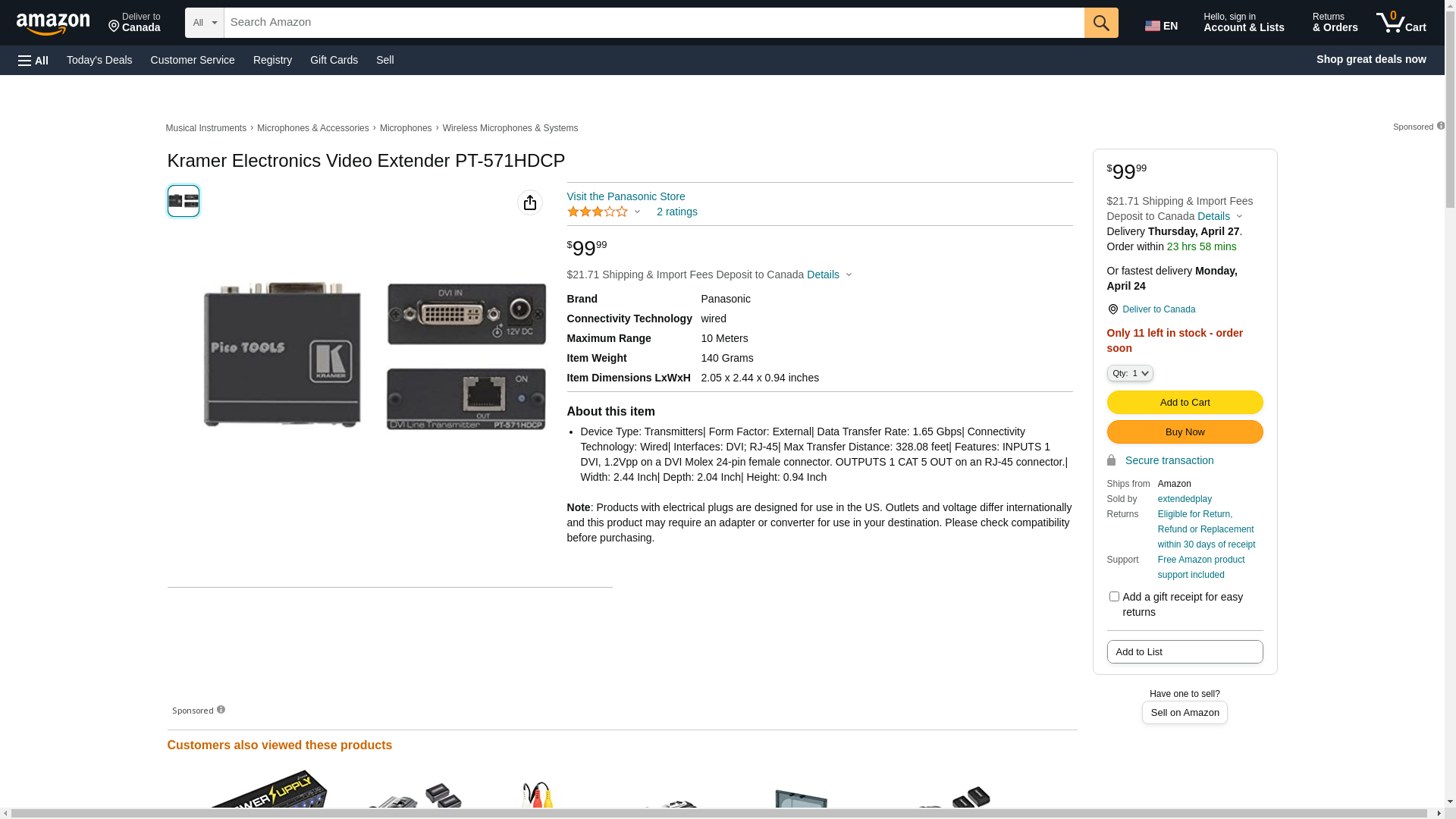 Kramer Electronics Video Extender PT-571HDCP