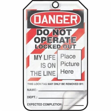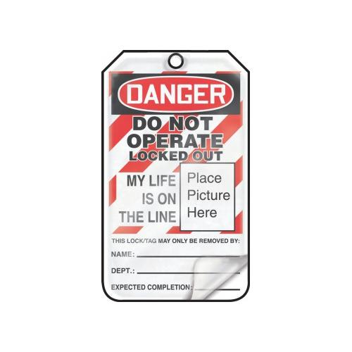 Accuform Lockout Tags, Pack of 25, Danger Do Not Operate Locked Out My Life is on the Line with Picture Insert, US Made OSHA Compliant Tags, Tear & Water Resistant Self-Laminating PF-Cardstock with Grommets, 5.75"x 3.25", MLT611LCP