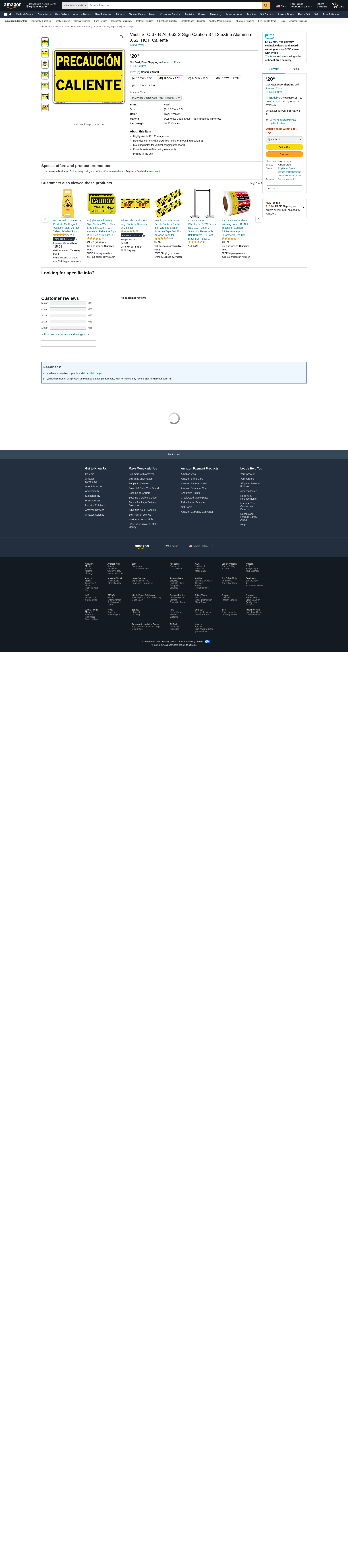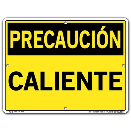 Vestil SI-C-37-B-AL-063-S Sign-Caution-37 12.5X9.5 Aluminum .063, HOT, Caliente