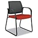Versatile enough for the private office or the lobby. Breathable mesh back offers comfort and support. Fabric-upholstered seat with Nano-Tex for superior stain resistance. Sturdy sled base. Simple assembly with no tools required. Recommended Applications: Guest, Reception, Waiting Room & Lounge; Executive & Management; Seat/Back Color: Poppy; Arms Included: Yes; Arm Style: Loop.