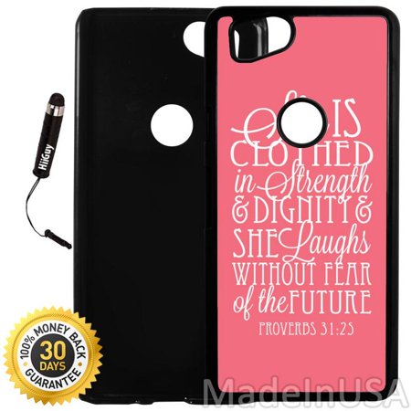 Custom Google Pixel 2 Case (Bible Verse Proverbs 31 25) Plastic Black Cover Ultra Slim | Lightweight | Includes Stylus Pen by Innosub