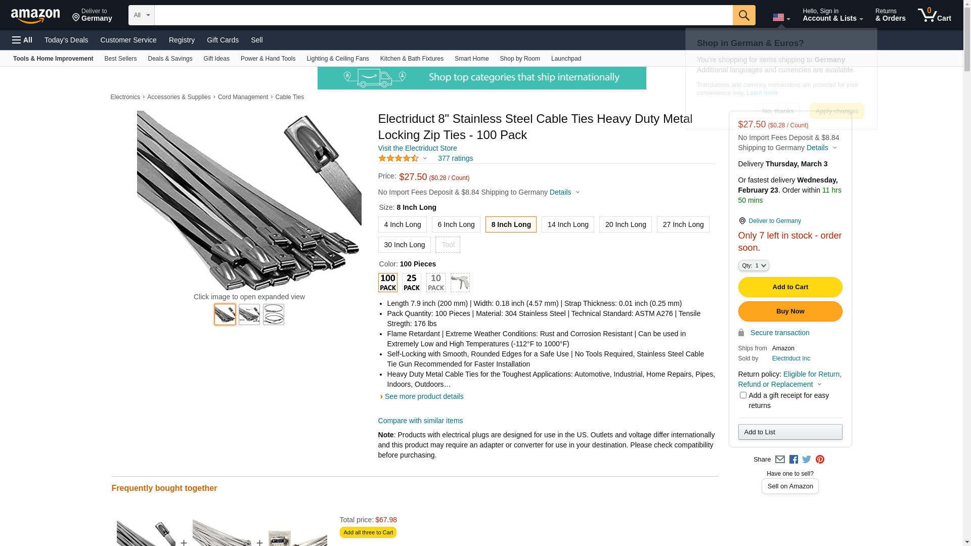 | Part number | CT-ED-SS-8-100 |