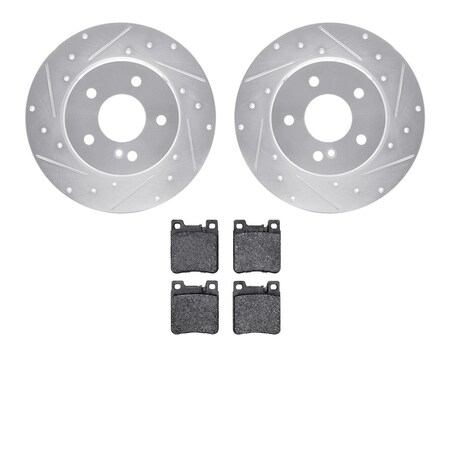 Dynamic Friction Company Rear Brake Rotors Drilled and Slotted Silver with 5000 Advanced Brake Pads - 7502-63033