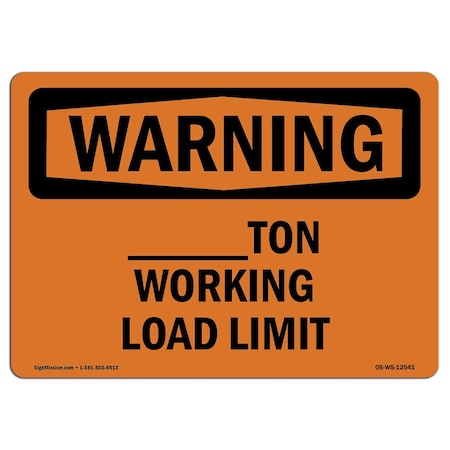 OSHA WARNING Sign, Custom -Ton Working Load Limit, 18in X 12in Decal