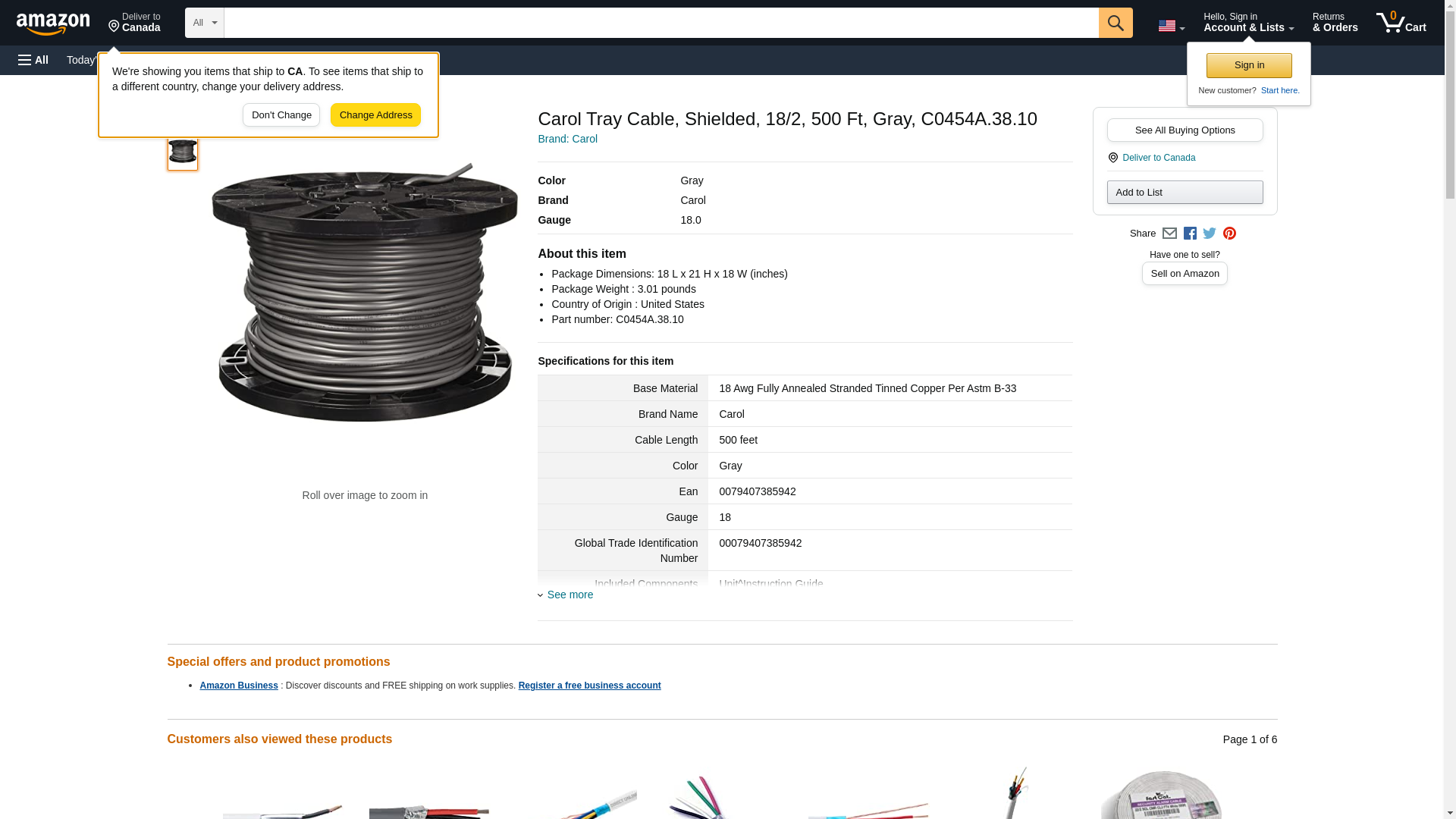 Carol C0454A.38.10 2 Communication and Control Cable, Power-Limited Tray Cable, Foil Shield, Gray PVC, 500'