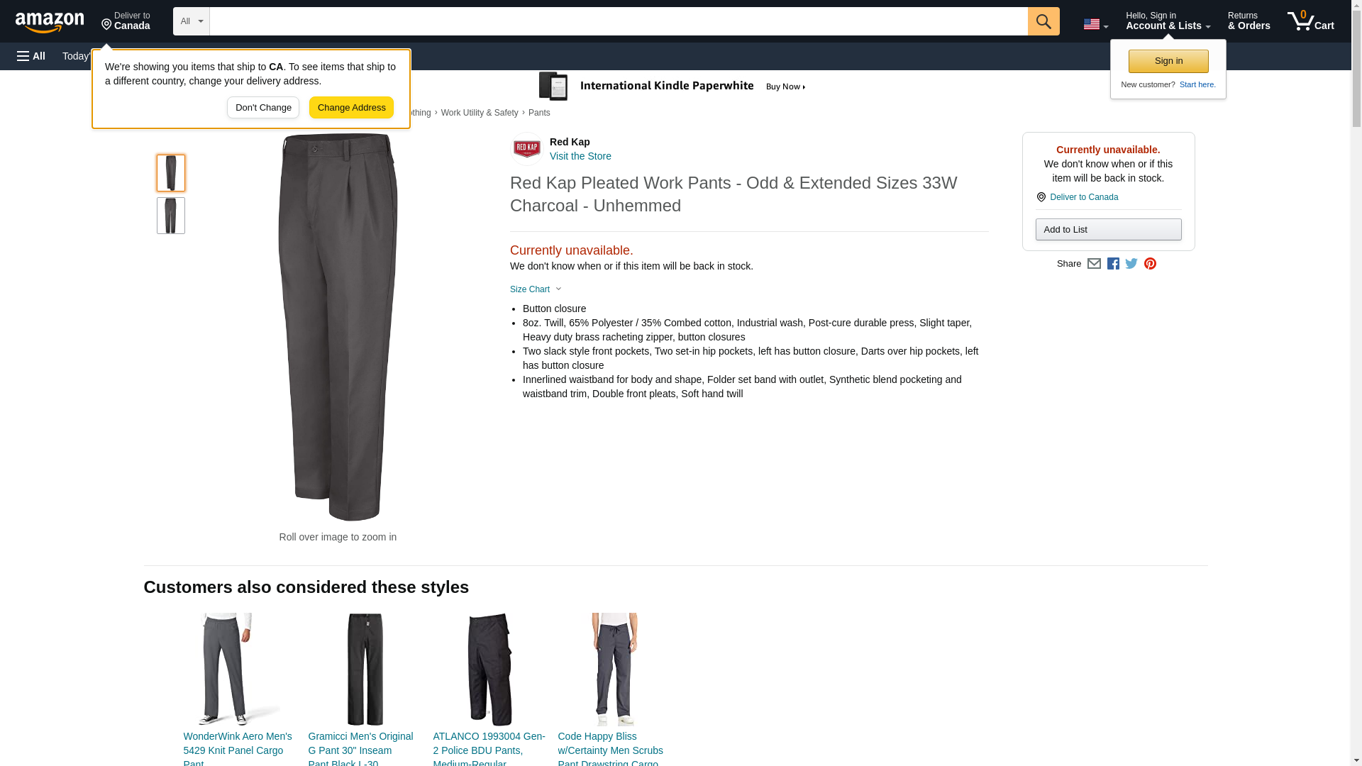 Red Kap Pleated Work Pants - Odd & Extended Sizes 33W Charcoal - Unhemmed