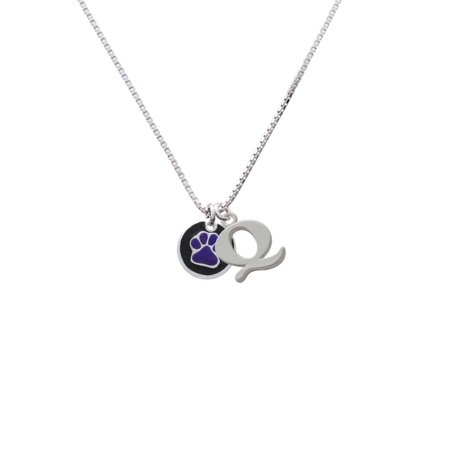 | Feature | Silver Tone Purple Paw on Black Disc Capital -Q- Initial Necklace. |
