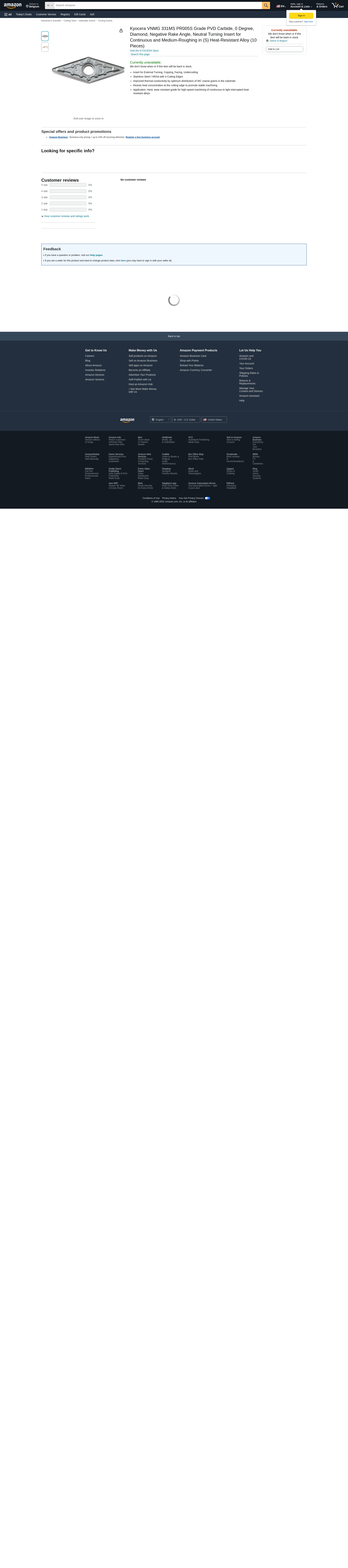 Kyocera VNMG 331MS PR005S Grade PVD Carbide, 0 Degree, Diamond, Negative Rake Angle, Neutral Turning Insert for Continuous and Medium-Roughing in (S) Heat-Resistant Alloy (10 Pieces)