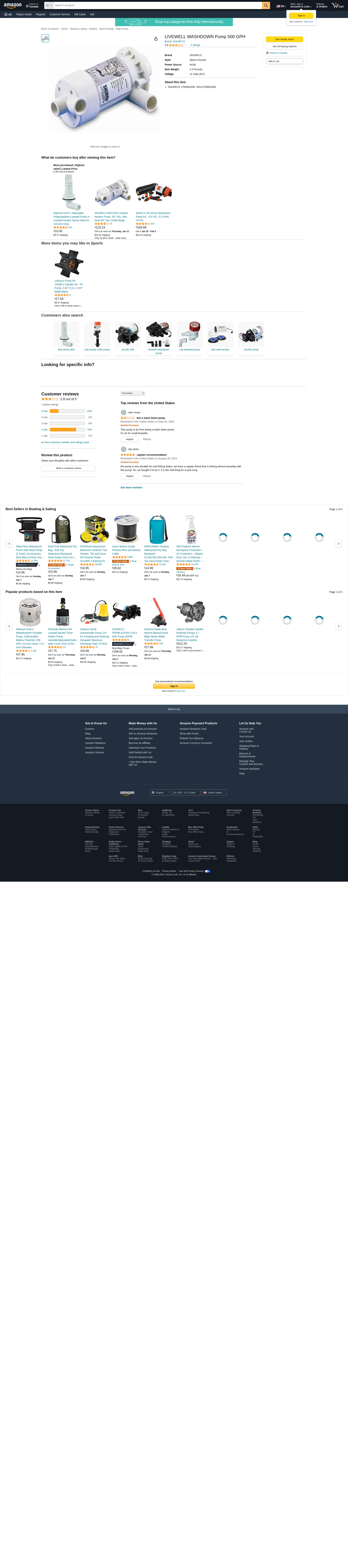 Shurflo 1700-001-030 Bait Sentry Livewell Water Pump 500GPH 3/4 In-Out Boat MD