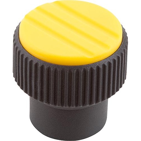 KIPP K0247.01067 KNURLED KNOB SIZE:1 D=M06 D1=21 H=22 THERMOPLASTIC BLACK RAL7021 COMP:STAINLESS STEEL CAP:YELLOW RAL1021 - MROSupply.com