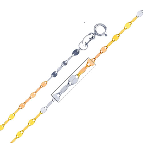 Precious Stars Jewelry 14k Tri-tone Gold 1.7-mm Mirror Chain Necklace (20 inch)