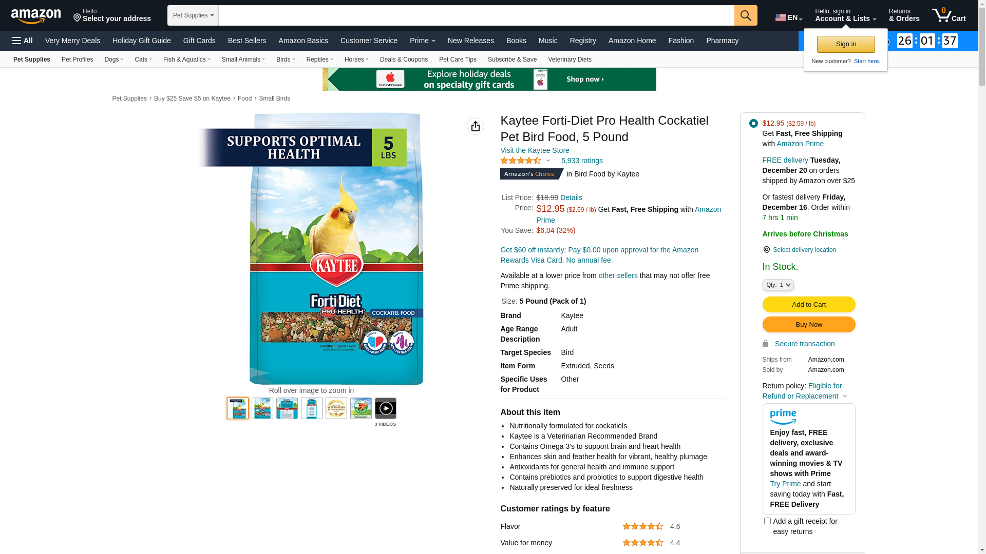 Kaytee Forti-Diet Pro Health Cockatiel Pet Bird Food, 5 Pound