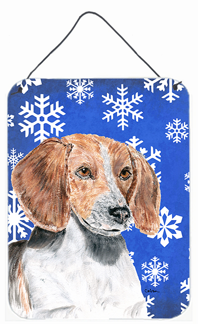 Caroline's Treasures SC9607DS1216 English Foxhound Winter Snowflakes Wall or Door Hanging Prints Aluminum Metal Sign Kitchen Wall Bar Bathroom Plaque Home Decor Front Door Plaque, 12x16, Multicolor