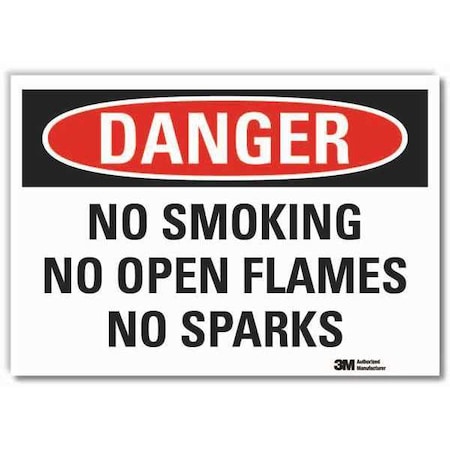 No Smoking Sign, Horizontal Rectangle, Number of Printed Sides 1, English, Sign Format Traditional OSHA, Sign Legend No Smoking No Open Flames No Sparks, Sign Legend Background Color White, Sign Legend Style Text