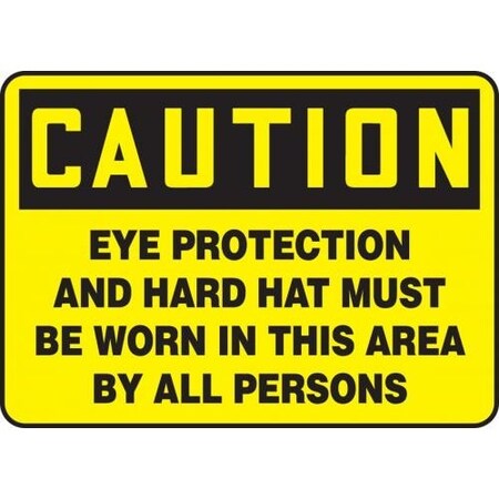 Accuform MPPE622VA Multi-Protection CAUTION EYE PROTECTION & HARD HAT MUST BE WORN INBY ALL 10"x14" Alum (040)