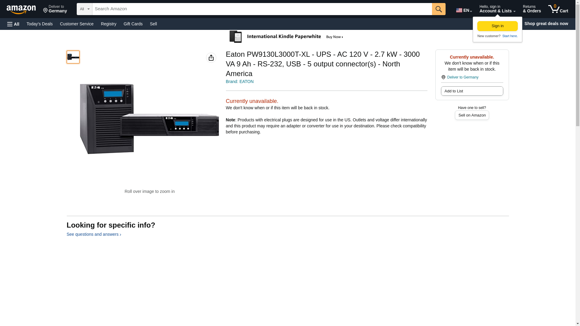 - Eaton Pw9130 3000va Tower Ups 230v - 3000va/2700w - 9 Minute Full Load - 4 X Nema 5-15/20r, 1 X Nema L5-30r