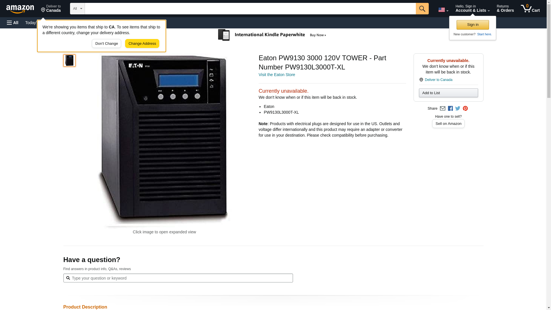 Eaton PW9130 3000 120V Tower - Part Number PW9130L3000T-XL