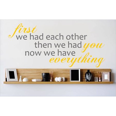DWVL3984 <br /> <b>Features</b> <br /> <ul> <li>Made in the USA</li> <li>Product Type: Wall decal</li> <li>Theme: Words/Quotes/Letters/Numbers</li> <li>Compatible Surface Type: Multi-surface</li> <li>Application Type: Self-adhesive</li> <li>Removable: Yes</li> <li>Washable: Yes</li> <li>Country of Manufacture: United States</li> </ul> <br /> <b>Dimensions</b> <br /> <ul> <li>Overall depth: 0.16"</li> <li>Overall Product Weight: 0.5 lbs</li> </ul> <br />Size 8" H x 20" W x 0.16" D <br /> <ul> <li>Overall Height - Top to Bottom: 8"</li> <li>Overall Width - Side to Side: 20"</li> </ul> <br />Size 12" H x 30" W x 0.16" D <br /> <ul> <li>Overall Height - Top to Bottom: 12"</li> <li>Overall Width - Side to Side: 30"</li> </ul> <br />Size 10" H x 20" W x 0.16" D <br /> <ul> <li>Overall Height - Top to Bottom: 10"</li> <li>Overall Width - Side to Side: 20"</li> </ul> <br />Size 14" H x 30" W x 0.16" D <br /> <ul> <li>Overall Height - Top to Bottom: 14"</li> <li>Overall Width - Side to Side: 30"</li> </ul>