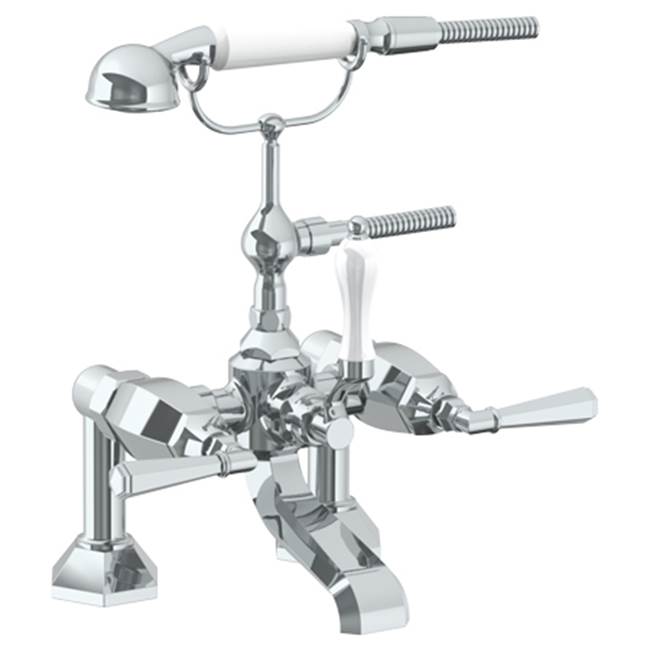 WATERMARK 312-8.2-Y-GP GRAMERCY 13 3/8 INCH THREE HANDLES DECK MOUNT TUB FILLER WITH HAND SHOWER, GREEN PATINA, LYONS...
