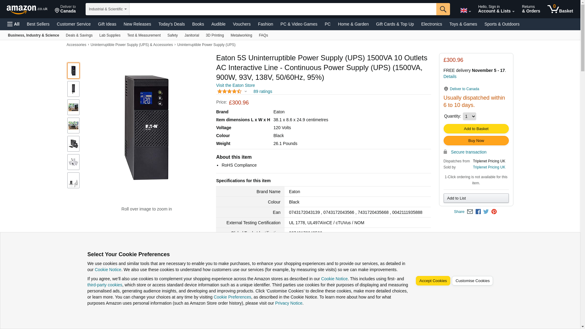| Feature | <b>Price For:</b> Each<b>Order Unit:</b> Each\xa01 <b>Backup Time - Full Load:</b>: - <b>Capacity (VA / W):</b>: 1.5kVA / 900W <b>Height:</b>: 9.8 <b>Input Voltage AC Max:</b>: 120 <b>Length:</b>: 15 <b>No. of Outlets:</b>: 10 <b>Output Voltage:</b>: 115 <b>SVHC:</b>: To Be Advised <b>Width:</b>: 3.4 |