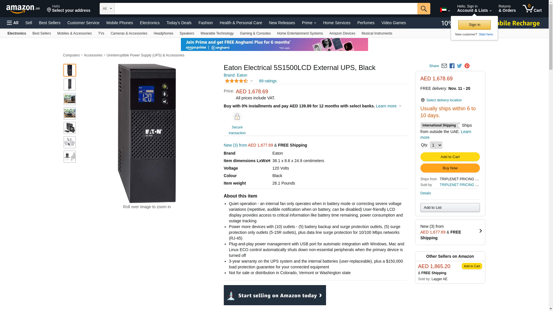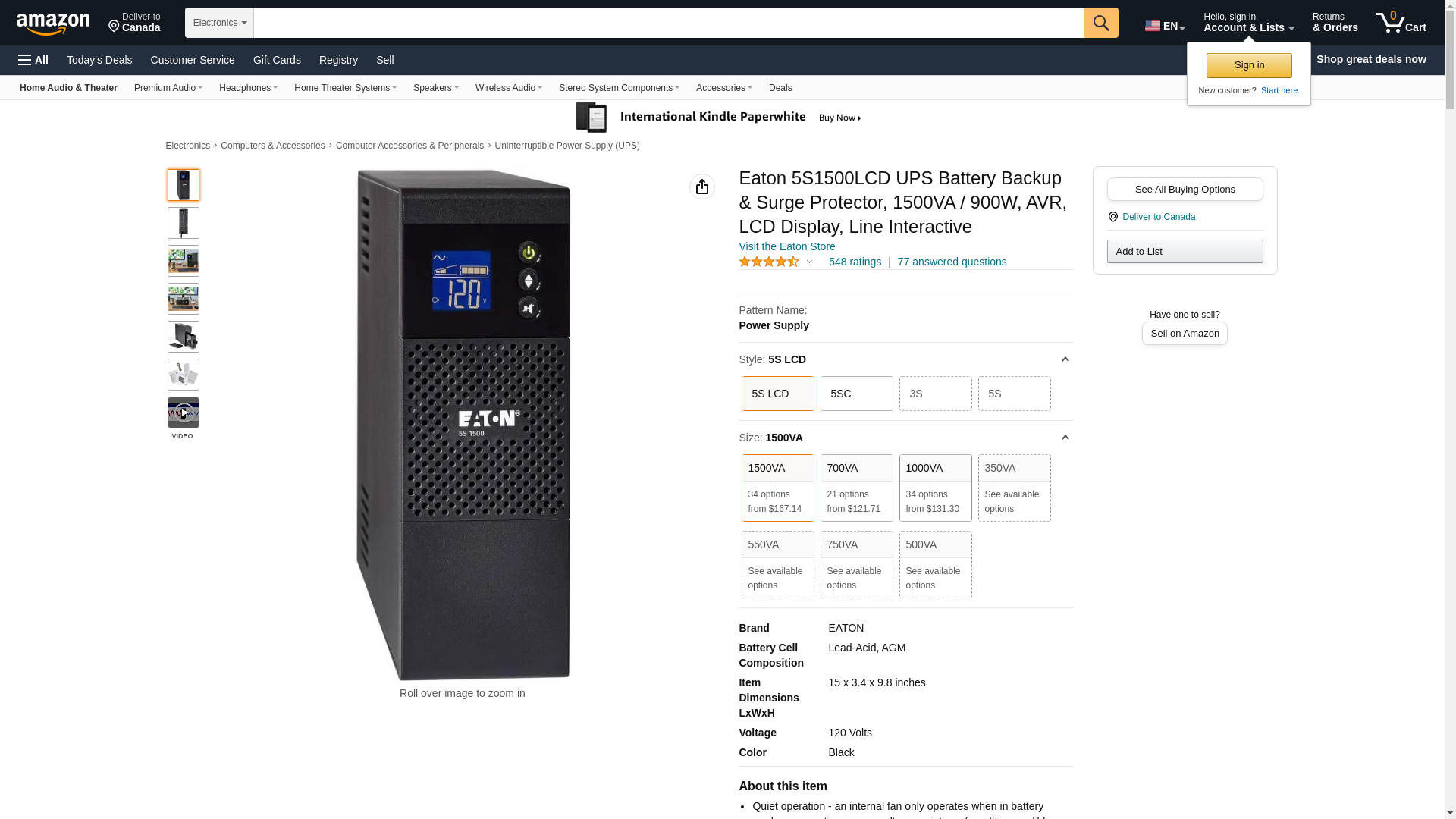 100% Genuine- Computer/Laptop Replacement or Internal parts<br>Part Number: 5S1500LCD <br>Product Type Line-interactive UPS<br> Technical Information<br> Receptacles 10 x NEMA 5-15R<br> Battery Information<br> Backup / Run Time (Full Load) 2 Minute<br> Power Description<br> Load Capacity (VA) 1500 VA<br> Load Capacity (Watt) 900 W<br> Input Voltage 110 V AC<br> Output Voltage 115 V AC<br> Physical Characteristics<br> Height 9.8"<br> Width 3.4"<br> Depth 15"<br> Form Factor Tower The small, compact Eaton 5S UPS delivers backup power for desktop PCs and workstations. The Eco-Control capability of this small UPS enables you save up to 30 percent in energy consumption. You can also enhance your power protection and safeguard your data when you pair it with the Eaton UPS Companion software. The 5S displays critical UPS information on battery time and outage tracking through a user-friendly LCD interface.<br><b>Note:</b><br>Picture may not match actual product. Please ensure that your original part number matches this exactly, or check with the manufactuer for compatiblity. Customers are responsible for compatiblity.
