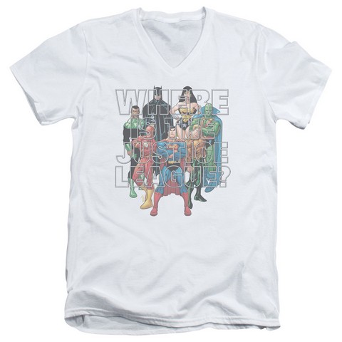 Trevco Jla-Classified No. 1 Cover Short Sleeve Adult V-Neck 30-1 Tee, White - Medium