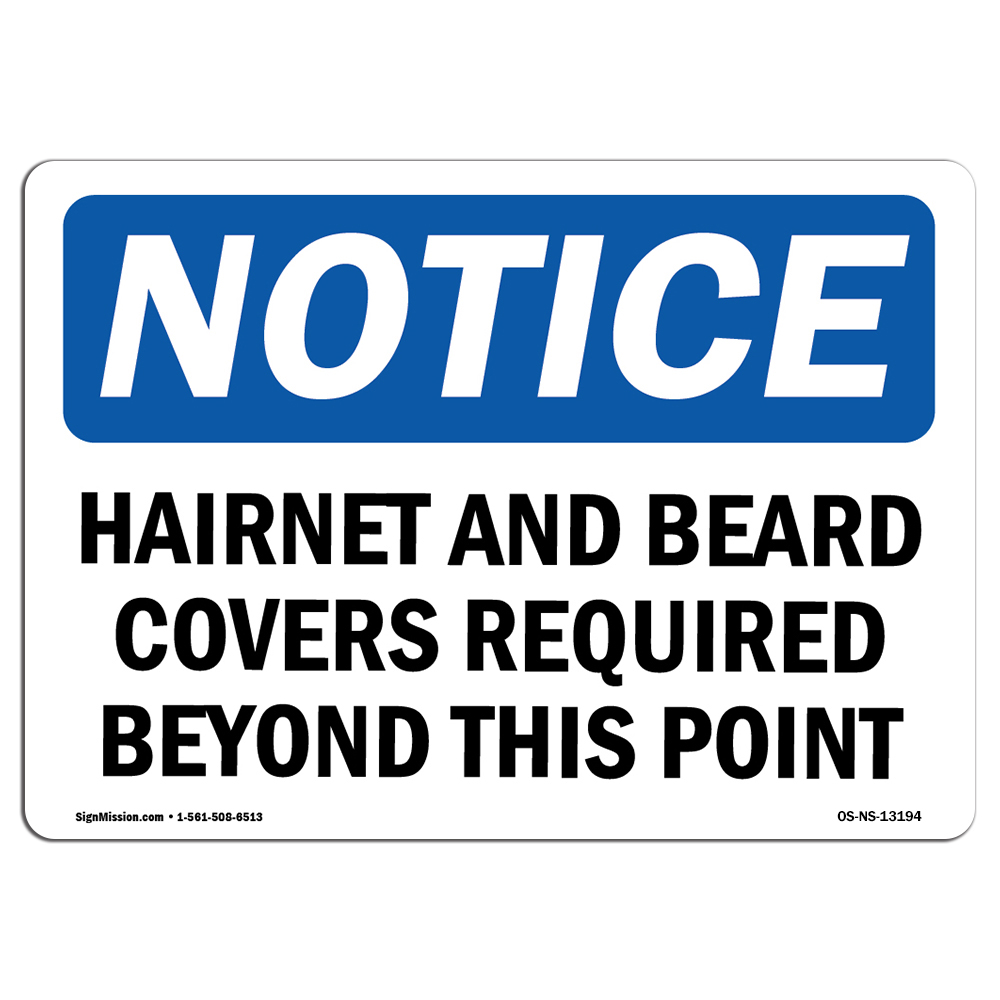 OSHA Notice Signs - Hairnets and Beard Covers Required Beyond Sign | Extremely Durable Made in The USA Signs or Heavy Duty Vinyl Label | Protect Your Warehouse & Business