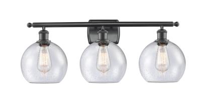 INNOVATIONS LIGHTING 516-3W-BK-G124-8-LED ATHENS BALLSTON 26 INCH 3 LIGHT WALL MOUNT BATH VANITY LIGHT, MATTE BLACK, LED