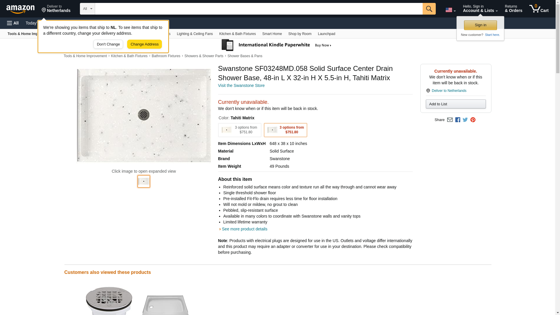 Swanstone SF03248MD.058 Solid Surface Center Drain Shower Base, 48-in L X 32-in H X 5.5-in H, Tahiti Matrix